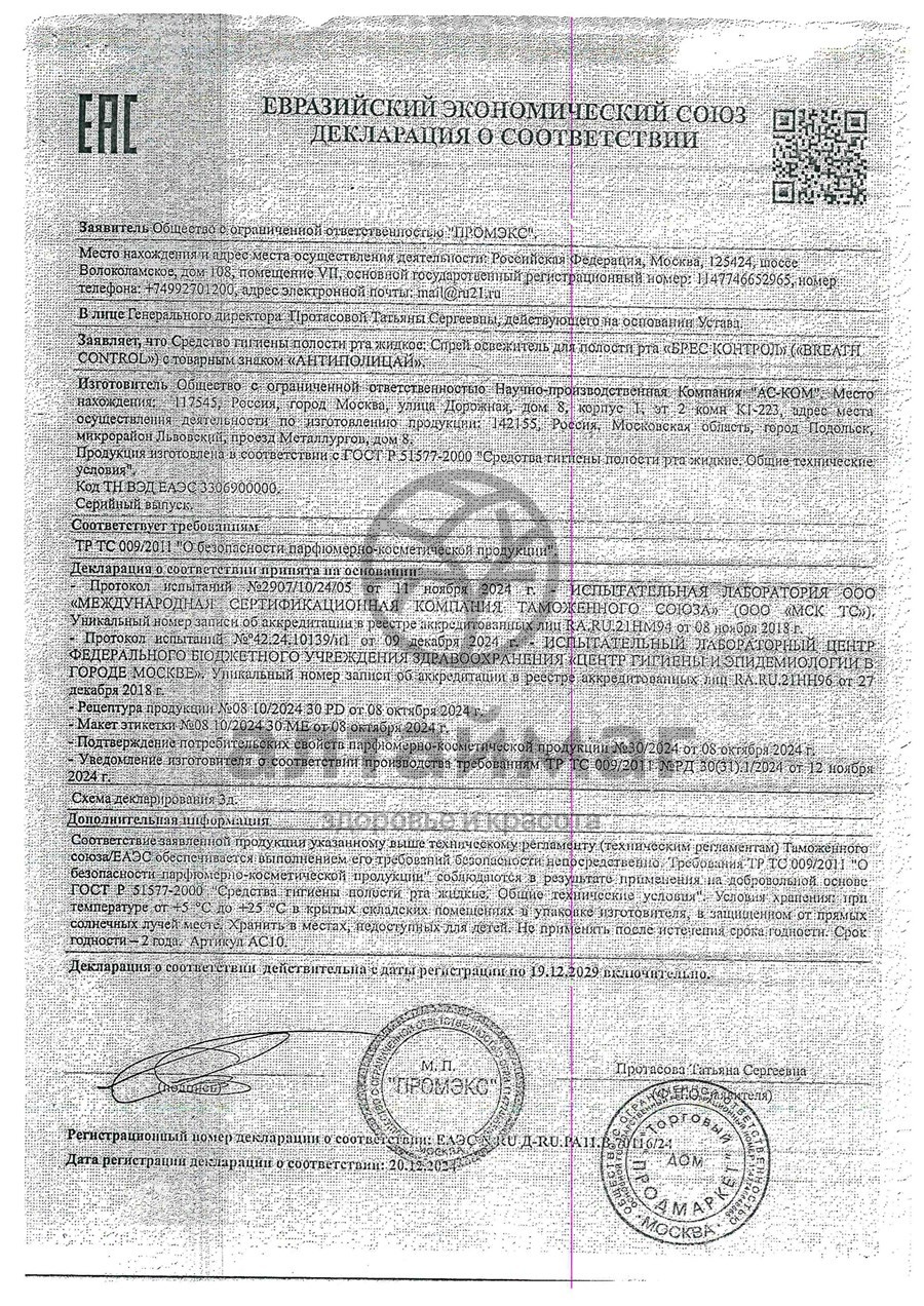 Есть вопросы по товару "Антиполицай спрей-дезодорант для полости рта 10 мл"?