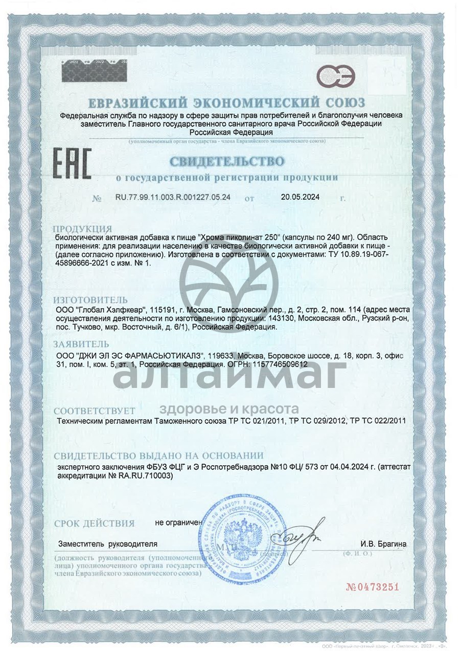 - Купите Хрома пиколинат БАД GLS 90 капсул в Владимире по доступной цене 688 ₽ с доставкой на дом или заберите Ваш заказ в Владимире из ближайшего пункта выдачи, сделав заказ на AltaiMag.ru.