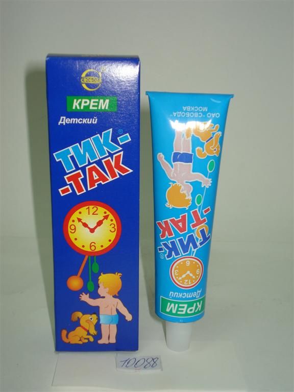 - «ТИК-ТАК» крем детский оказывает противовоспалительное действие, снимает раздражение и покраснение кожи, предотвращает ее сухость, питает и смягчает кожу.